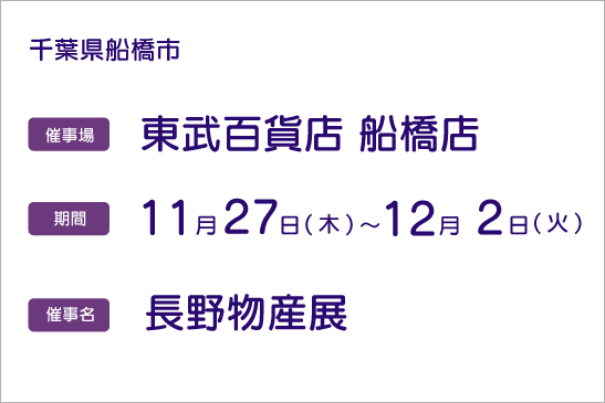 催事情報:11/27(木)~12/2(火) 東武百貨店 船橋店
